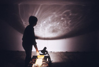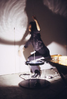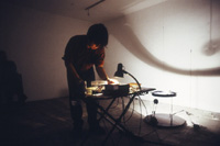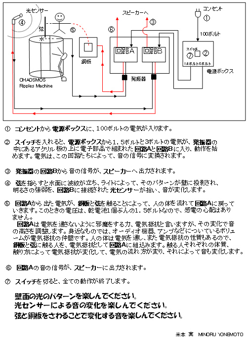冨岡さんの作品に感動したのは、マシン自体、マシンに触ることで起きる現象の美しさはもちろんだが、人の操作がマシンを通して現象となり、それを見た人が、また操作方法を変えていくという一連のフィードバックを持ったシステムにだった。しかも現象自体が、近年のコンピューターを利用したものよりも、微妙な変化とレスポンスを持っていることだった。実際に目の前で物理現象が起こっている強みであろう。