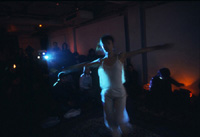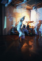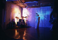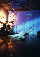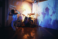 TOKYO-ASEAN JAM '03への参加でした。Chaosmos Acoustics Wave Machineを5点設置し、別所さんがダンス、マシン奏作をし、原田さんがドラムを演奏し、倉嶋さんがビデオ撮影・投影をするすべて即興の内容です。