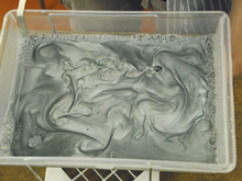 冨岡が可視化液体の作り方を伝授、いろいろな流れを体験しました。