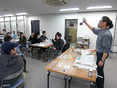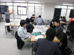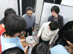 神戸芸術工科大学 大学院・芸術工学研究科 特任教授 高木隆司教授 担当の芸術工学基礎論の教室で [カオスモスマシン工作ワークショップ]をしました。