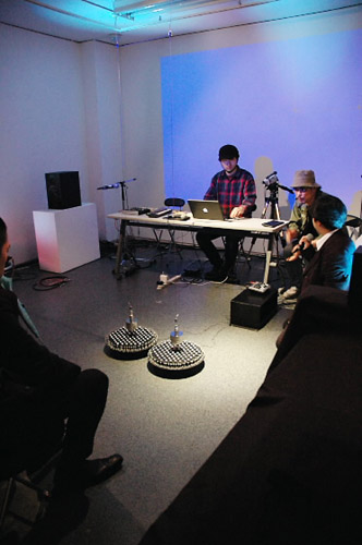 左から、CHAOSMOS/冨岡雅寛・木邑芳幸(ASK?代表)・松尾祐孝(洗足学園音楽大学教授) (写真提供:art space kimura ASK?) SOUND CREATORS LAB http://www.senzoku-mcc.net/scl/