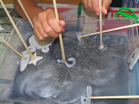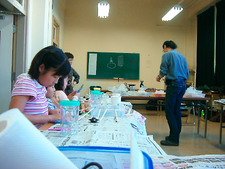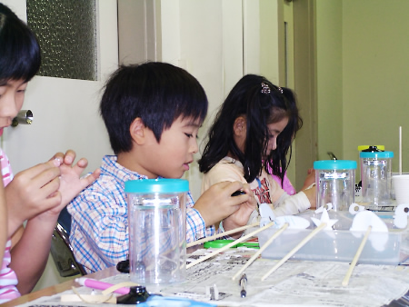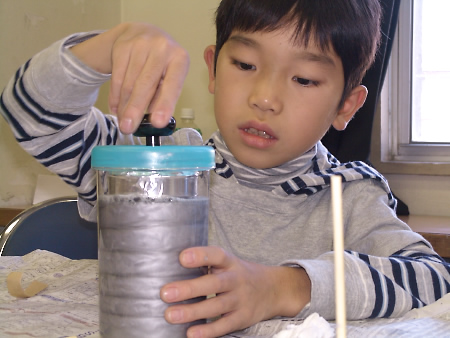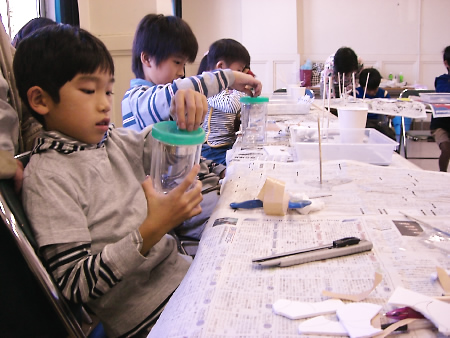午前と午後の合計4時間の中でいろいろな実験をして 最後にカオスモスマシンを作りました。 最後まで集中力が持続した、素晴らしいセッションでした。